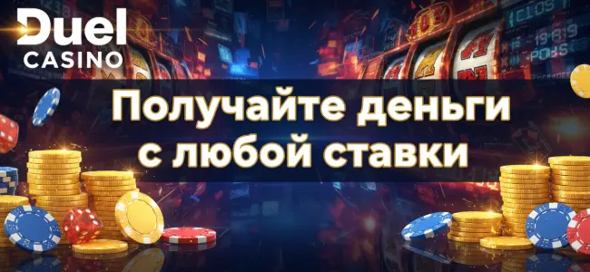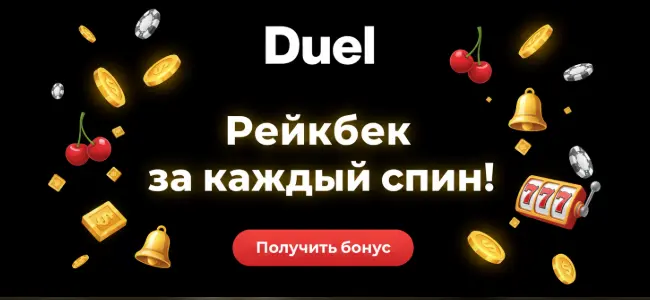 Дело в том, что Дуэль казино возвращает игроку реальные деньги за каждый спин. Да, вы не ослышались, за каждый удар игрок получает процент возврата, который зависит от RTP слота или другой игры.