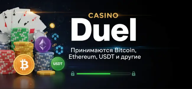 Казино Дуэль позволяет играть только с помощью криптовалют, поэтому здесь нет возможности пополнения с банковских карт. Казино стремится к анонимной игре и моментальным выплатам, поэтому подобные сервисы вызывают сложности.